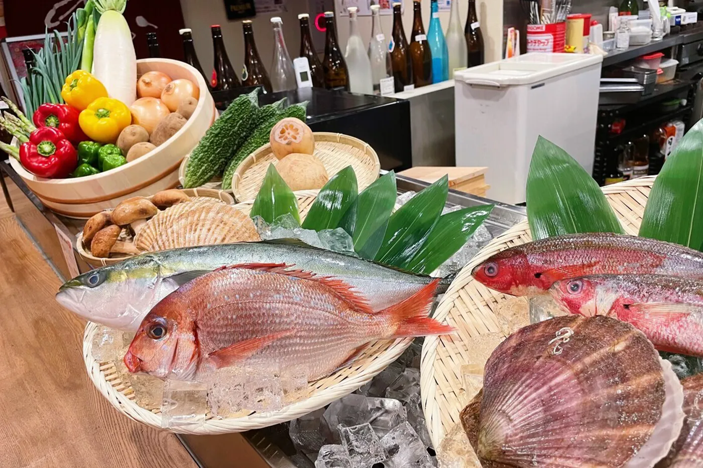 その日に入った魚や野菜、沖縄のブランド豚あぐー豚などをカウンターの目の前で焼いてお出しします!